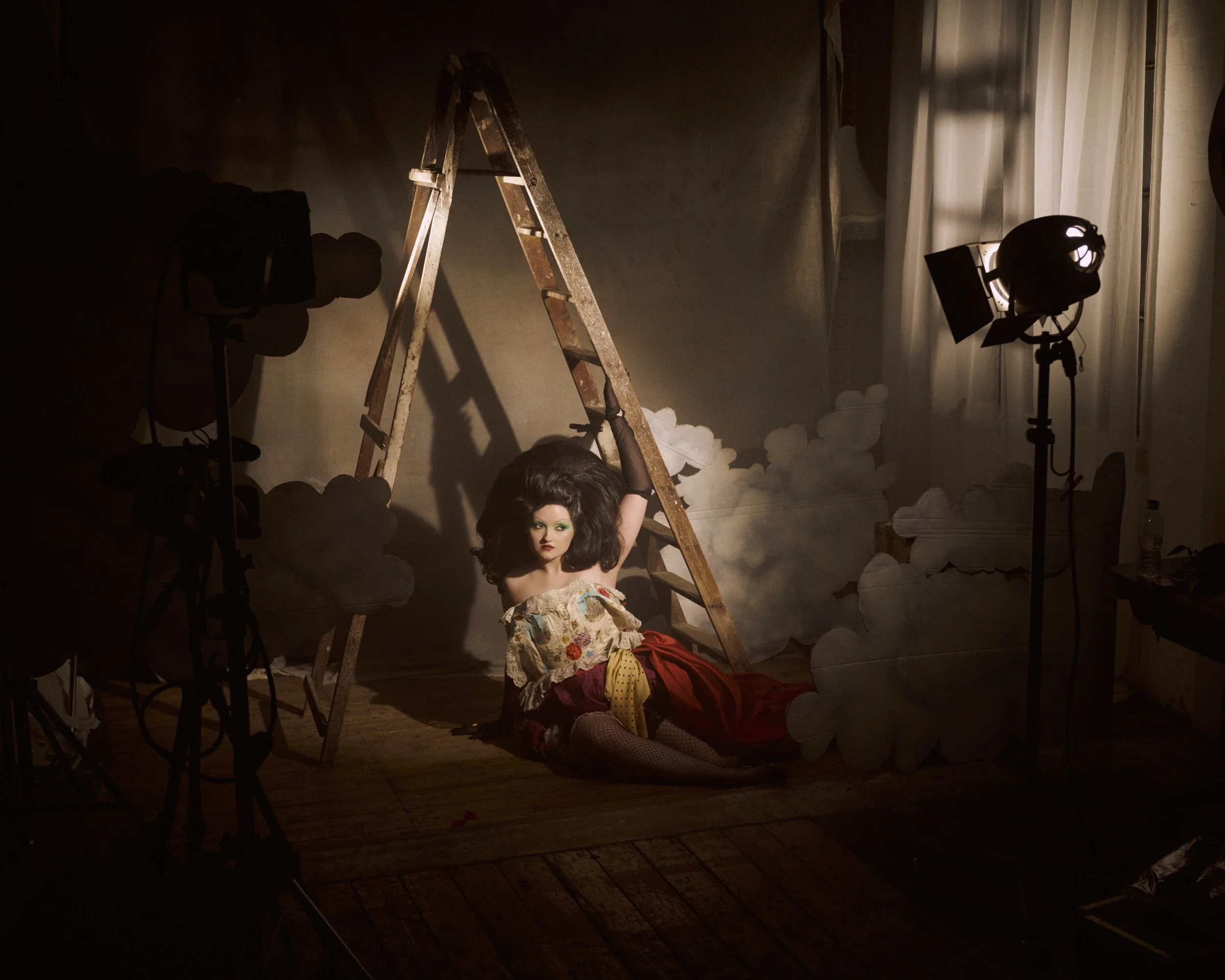 At the heart of Alfreda’s creative vision is a delicious paradox: a grand production that exists permanently on the brink of collapse. TEASERAMA! unfolds like the backstage of a spectacular musical that ran out of money just moments before the curtain rose. Half-built sets loom in the shadows, abandoned props gather dust in the wings, and glittering costumes wait for a stage that may never arrive.