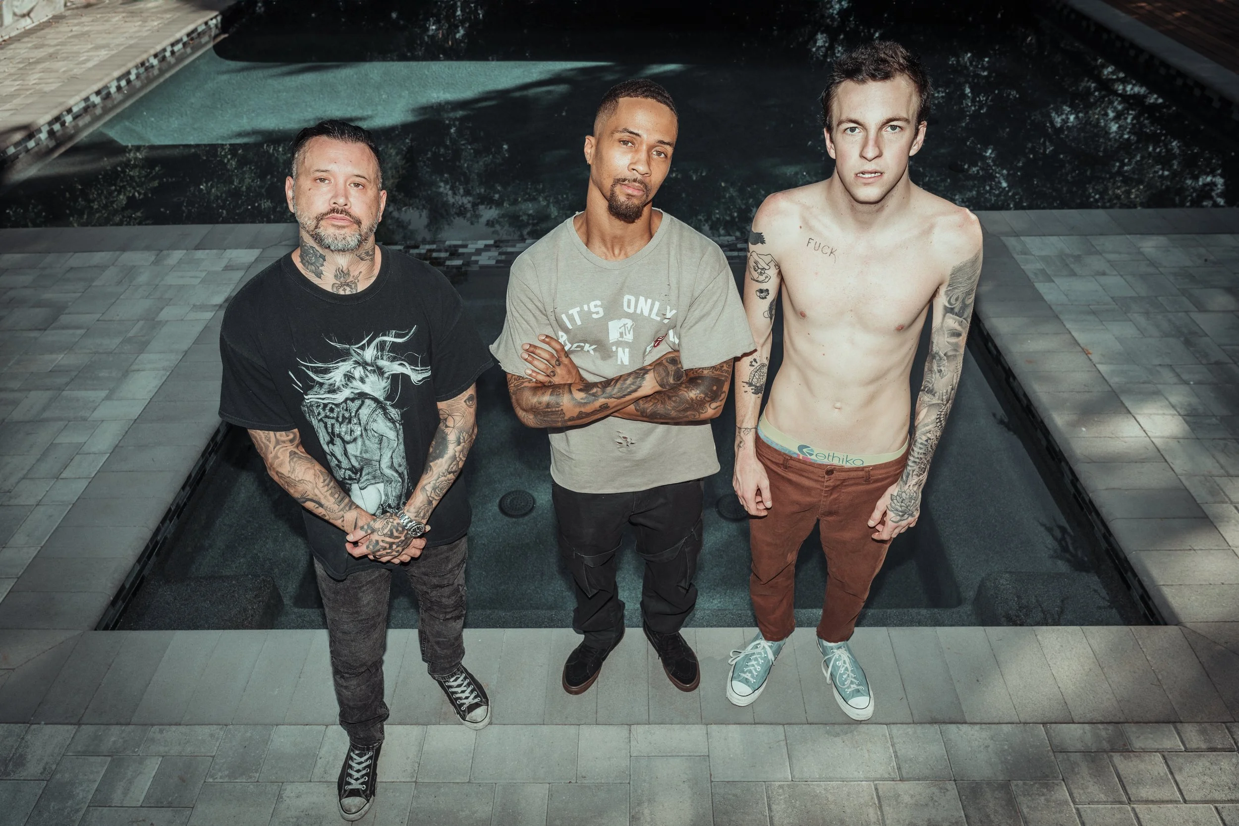 DAMNAGE ISN’T A BAND THAT WAS FORMED; IT ERUPTED — The trio of Tim Stewart (guitar/vocals), Jonny Drummond (bass/vocals), and Tosh Peterson (drums), have spent the last decade playing some of the biggest stages on Earth — the Super Bowl, Coachella, Grammys, Oscars — backing global icons and lighting up arenas night after night. But behind the flashing lights and world tours was a deeper pull: the hunger to create something that was truly theirs. Something unfiltered, untamed and undeniably real. That something is DAMNAGE, a project born not in a boardroom, but in the fire of shared history, punk spirit and relentless energy.