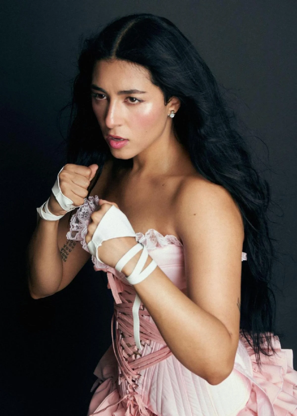 The corset I wore for the listening party was made by a brand called Sourpez. I worked with a designer named Meg Beck for the album looks, so she did the outfits for the album cover and the record packaging. A designer named Bailey Elayne did some other outfits I’ve worn for this album, including the “Downhill” single cover.